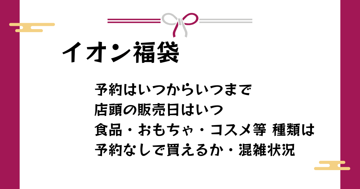 今回の記事では、イオン福袋の販売に先駆けて、予約開始日や店頭販売日、中身ネタバレなどをリサーチしました。