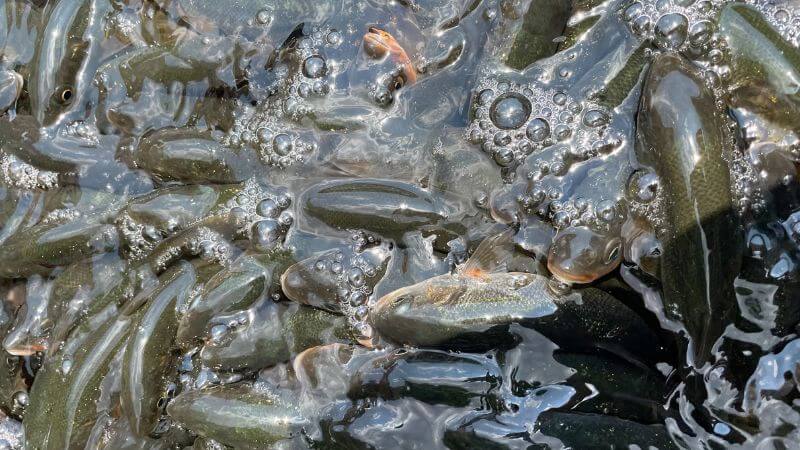 エサを持った手が水面にいくと、どこからともなく大量のウグイが寄ってきて、水面は全てウグイで埋め尽くされました。