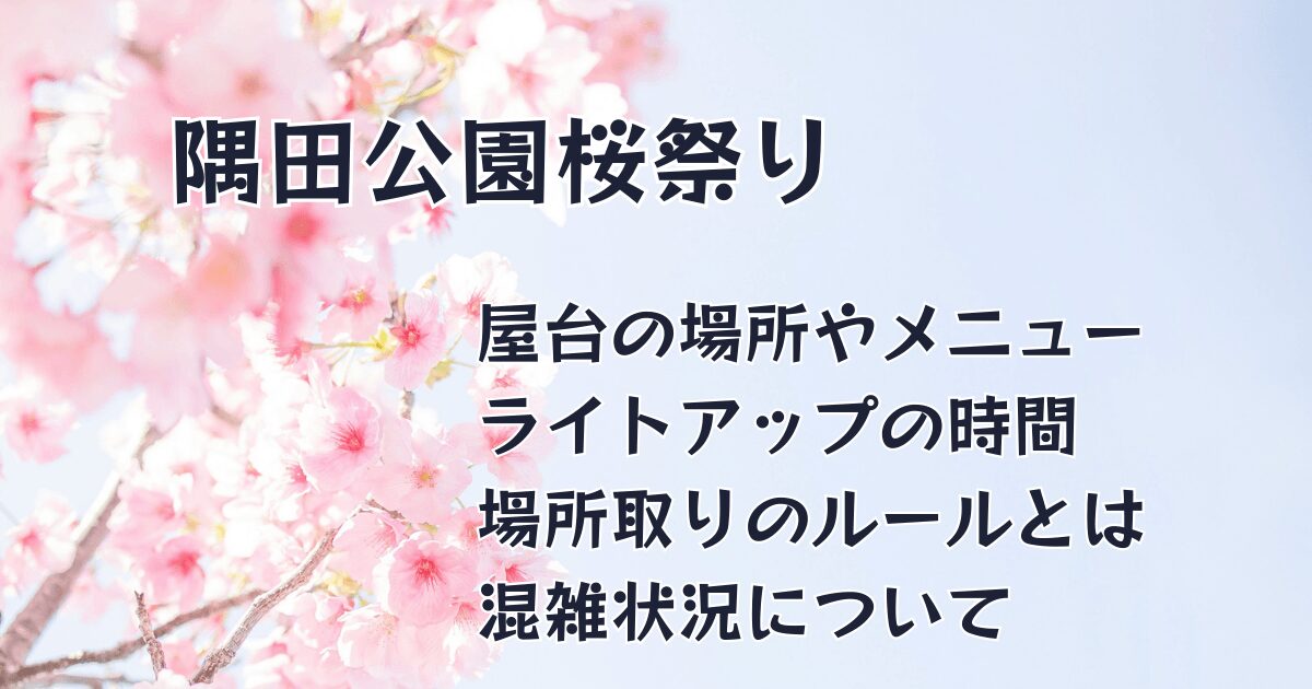 今回の記事では、隅田公園桜祭り2026の会場や入場料、屋台やライトアップイベントの時間は何時から何時までか、混雑状況や桜の開花状況などをリサーチしました。